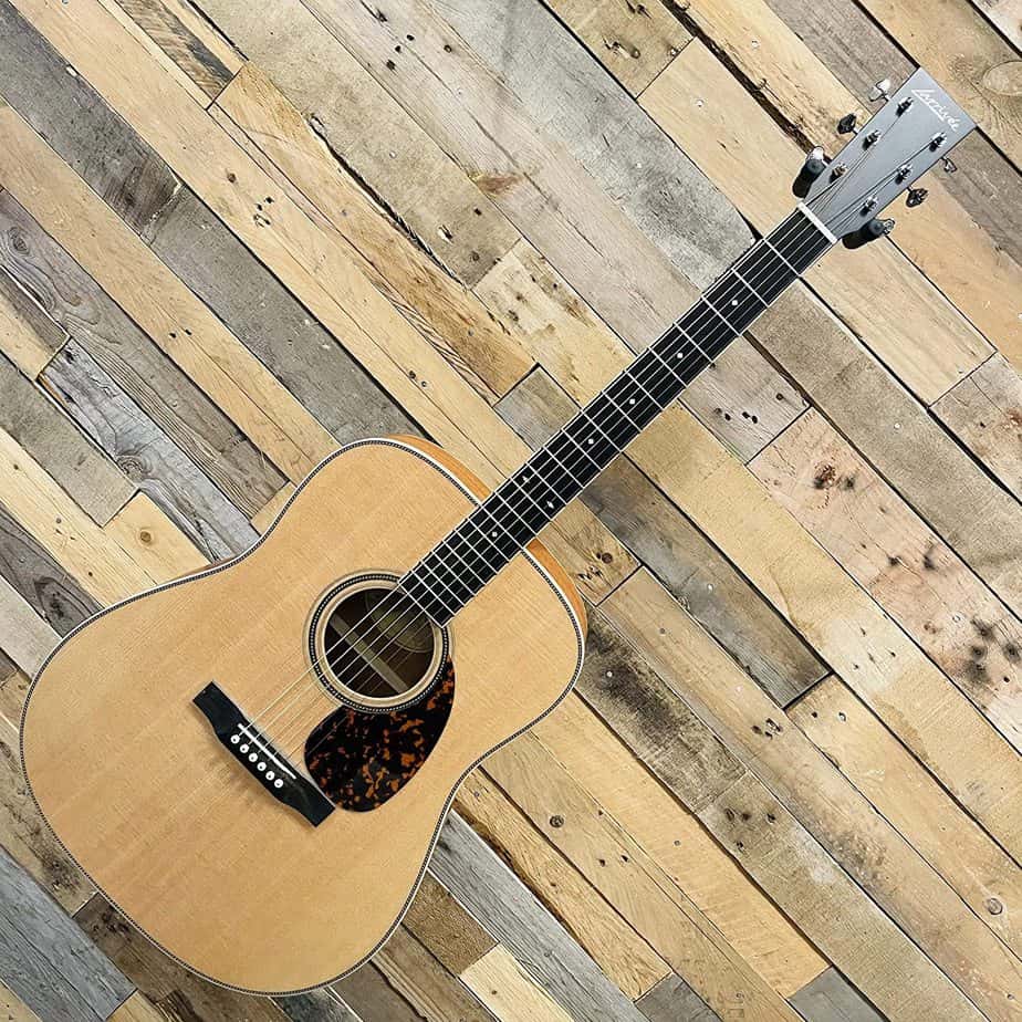 This guitar has a Sitka spruce top that comes with mahogany sides and back, as well as a single-piece mahogany neck. Mahogany makes guitars sound much better than laminated wood.
