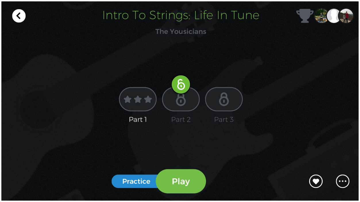 Yousician lessons for musical instruments are a series of missions, moving from Level 1 to Level 15.